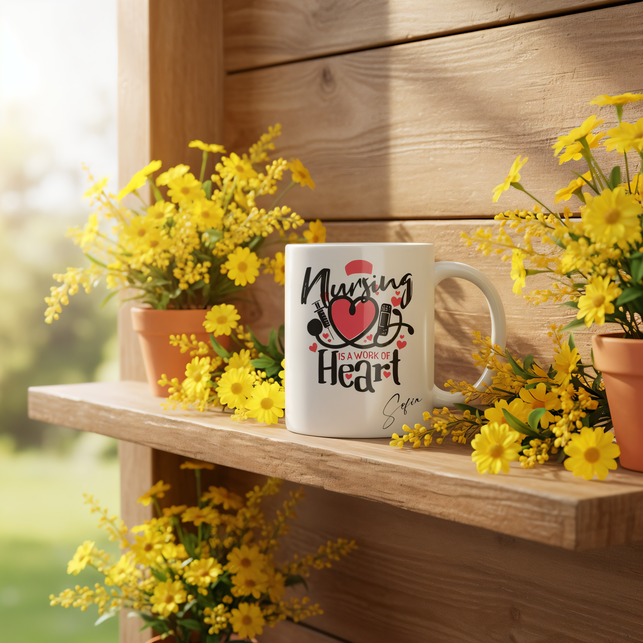 "Nursing is a work of heart" Tazza Infermieri – personalizzare mug